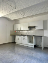 Séjour avec voûtains, cuisine équipée ouverte, 2 chambres parquetées avec placards, salle de douche, wc séparé, et un extérieur orienté Sud Ouest.
